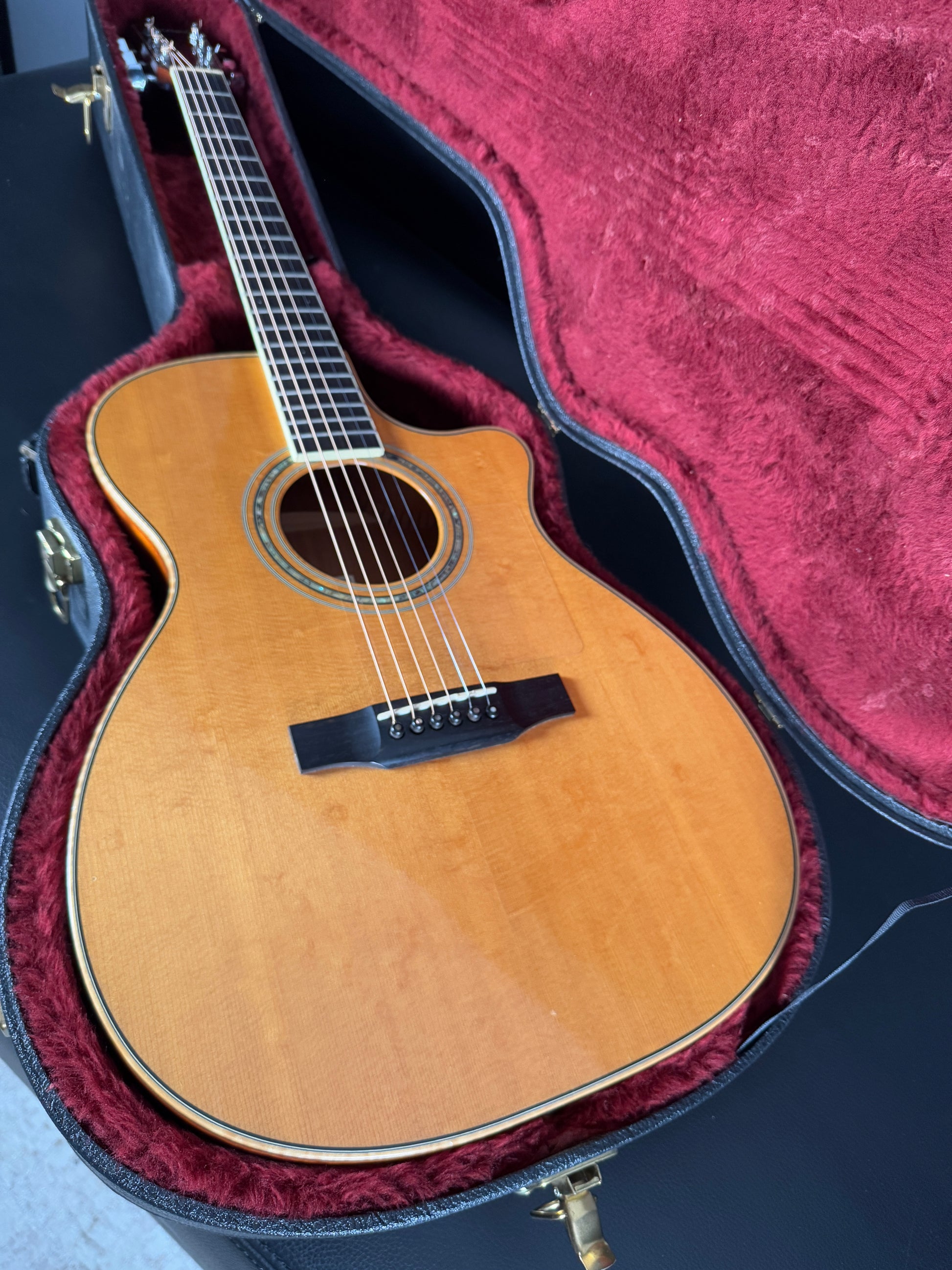 This Larrivée OMV-05 is in excellent original condition and comes with its original hard case. The OM body with a cutaway offers superb comfort and access to higher frets, while the combination of mahogany back and sides and a Sitka spruce top features beautiful bear claw figuring, paired with mahogany back and sides for a rich, balanced tone full of warmth and clarity.