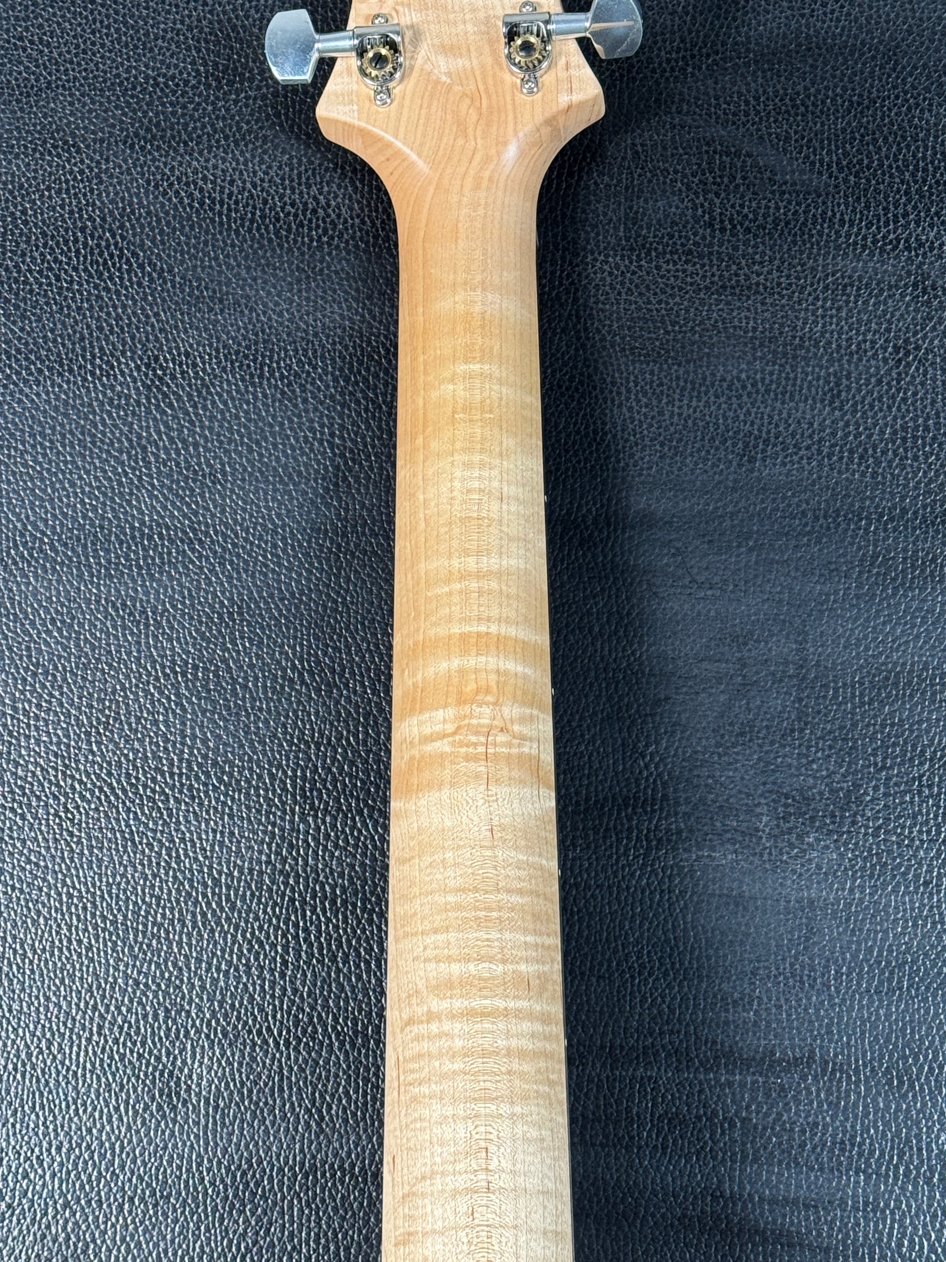 the electronics configuration includes specially-wound narrow 408 treble and bass pickups with a 305 pickup in the middle position. This unique combination is paired with a 5-way blade switch, providing an amazing variety of tones. Other features include a Korina body and a 25 ¼” scale length rock maple neck.” There are two mini toggles to split the humbuckers. Other specs include a quarter sawn flamed maple neck, rosewood fingerboard and open back tuners. Comes with original hardshell case and original case candy.