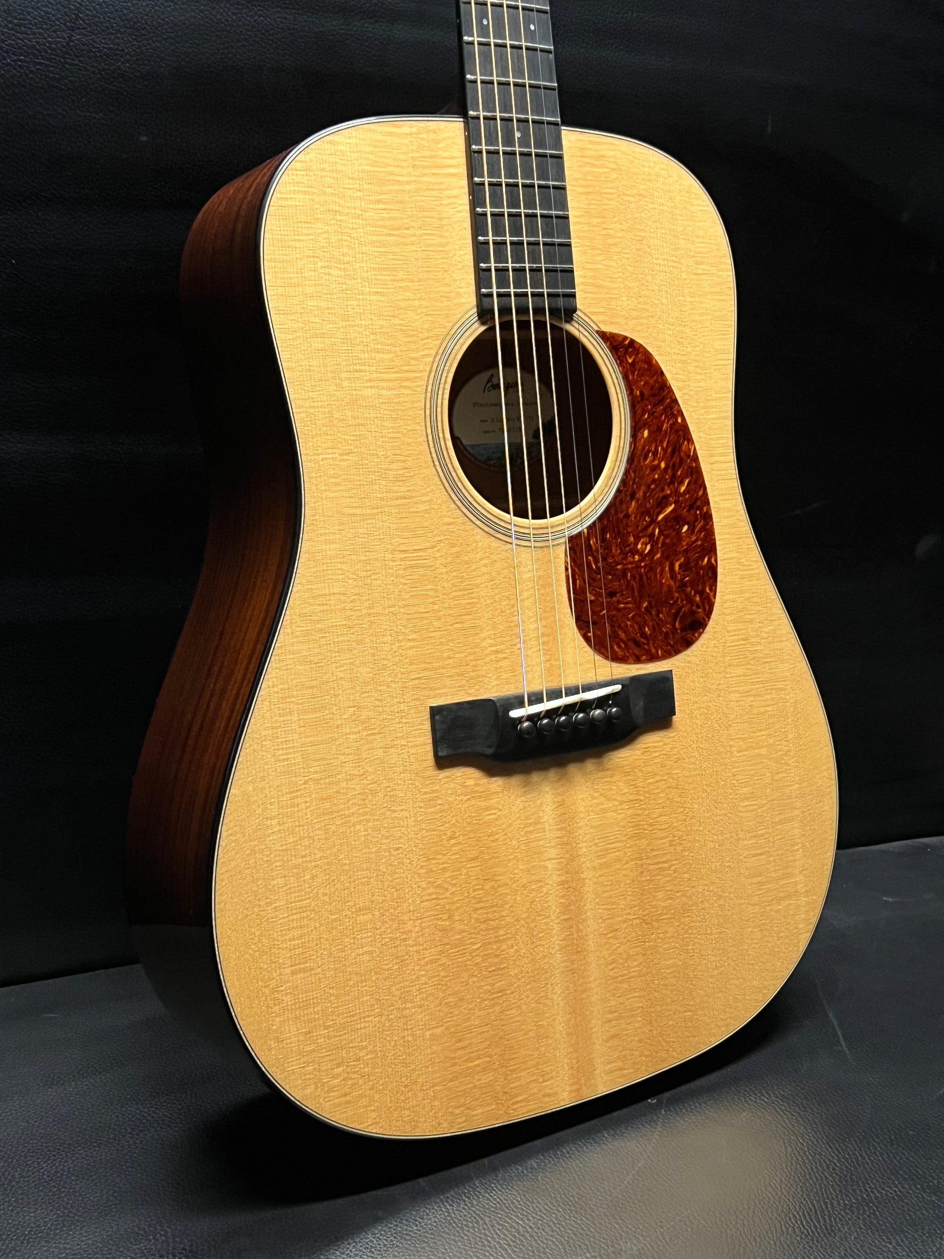 For decades the Country Boy has been a workhorse of the Bourgeois line, a go-to guitar for both professional and aspiring artists. Built to inspire, the Bourgeois Country Boy/TS advances the legacy of its predecessor, featuring Genuine Mahogany back and sides and an old-growth Sitka Spruce top, selected and hand voiced by Dana Bourgeois and his Lewiston, Maine team.