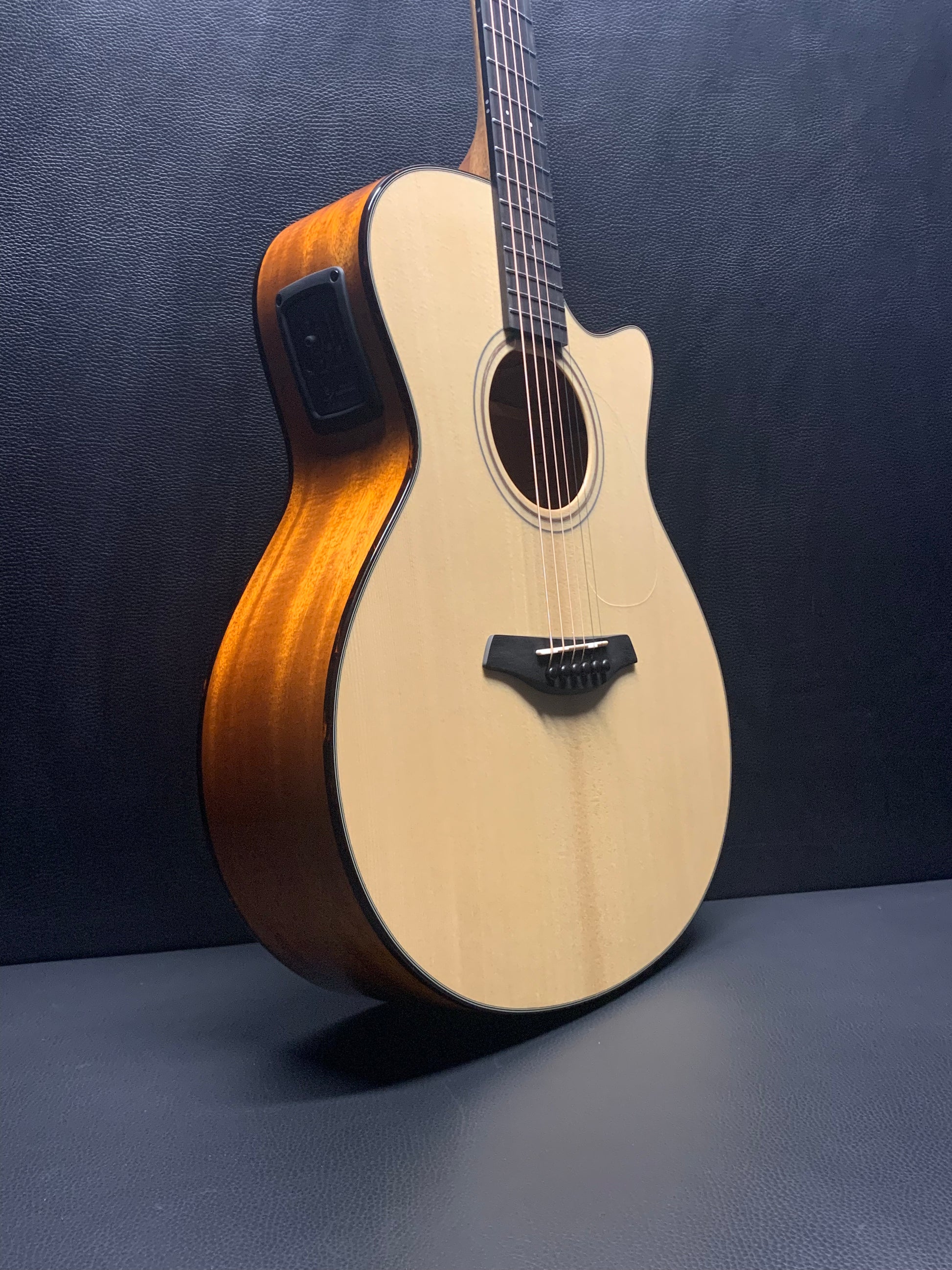 The Green SM has a soundboard made from carefully selected Sitka spruce, the back and sides are made from African mahogany. The entire body is protected by our proprietary Full-Pore High-Gloss Finish, developed to enhance the resonance qualities of tonewoods. The combination of finish and tonewoods translates into a beautiful musical sound across the entire tonal range with pleasing balanced mids and transparent sparkling highs.