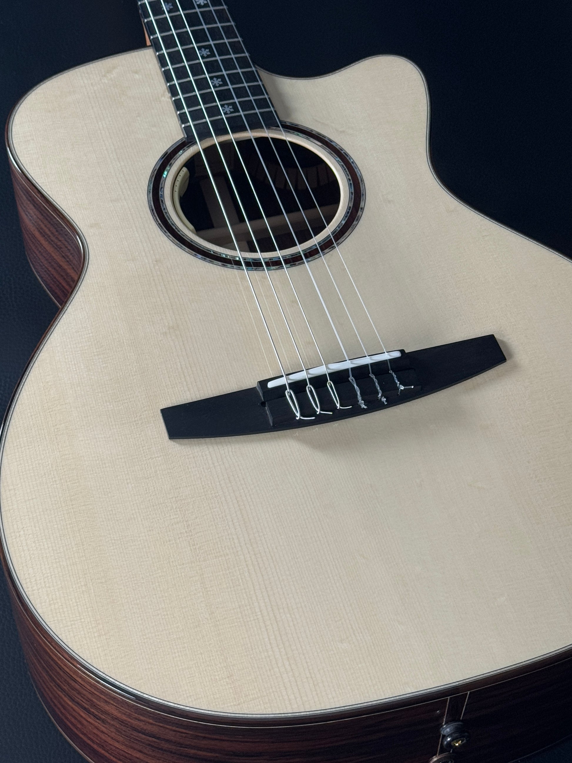 - Bridge: Rosewood bridge with compensated bone saddle for perfect intonation