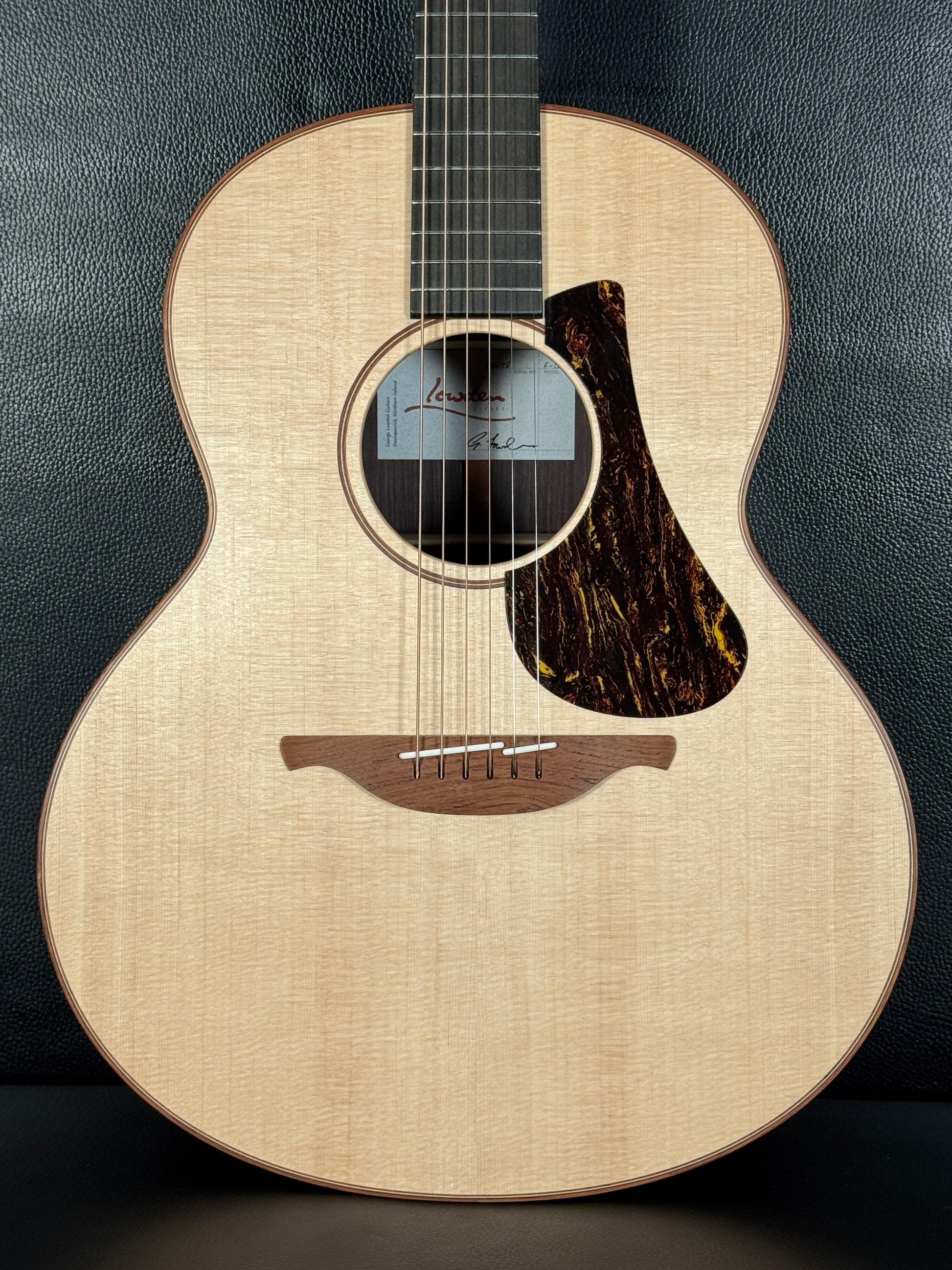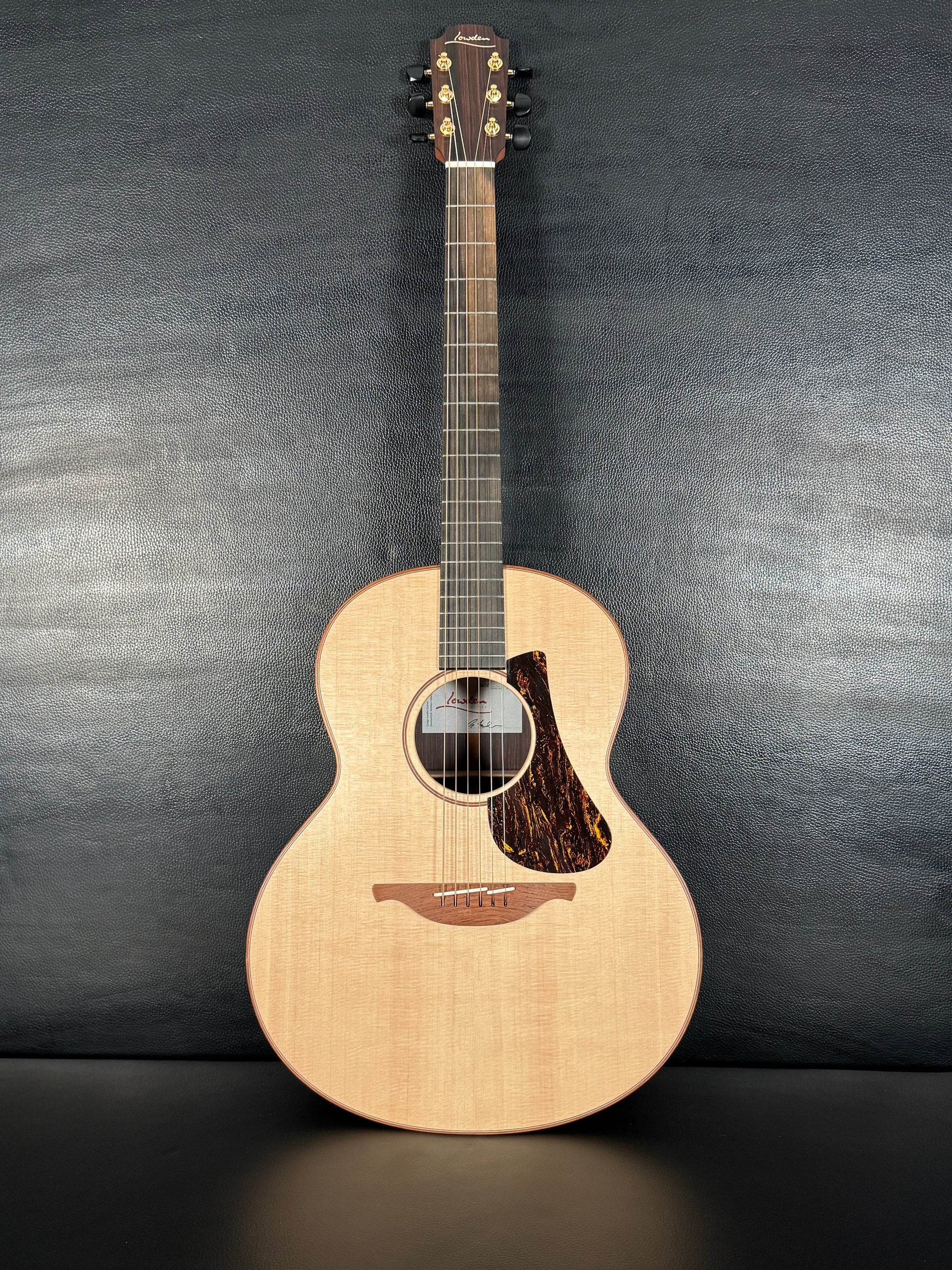 The F12's design incorporates a slightly reduced neck stiffness, achieved through its three-piece construction, allowing for enhanced vibration transfer. This results in the characteristic Lowden tone, which offers versatility across different playing styles.