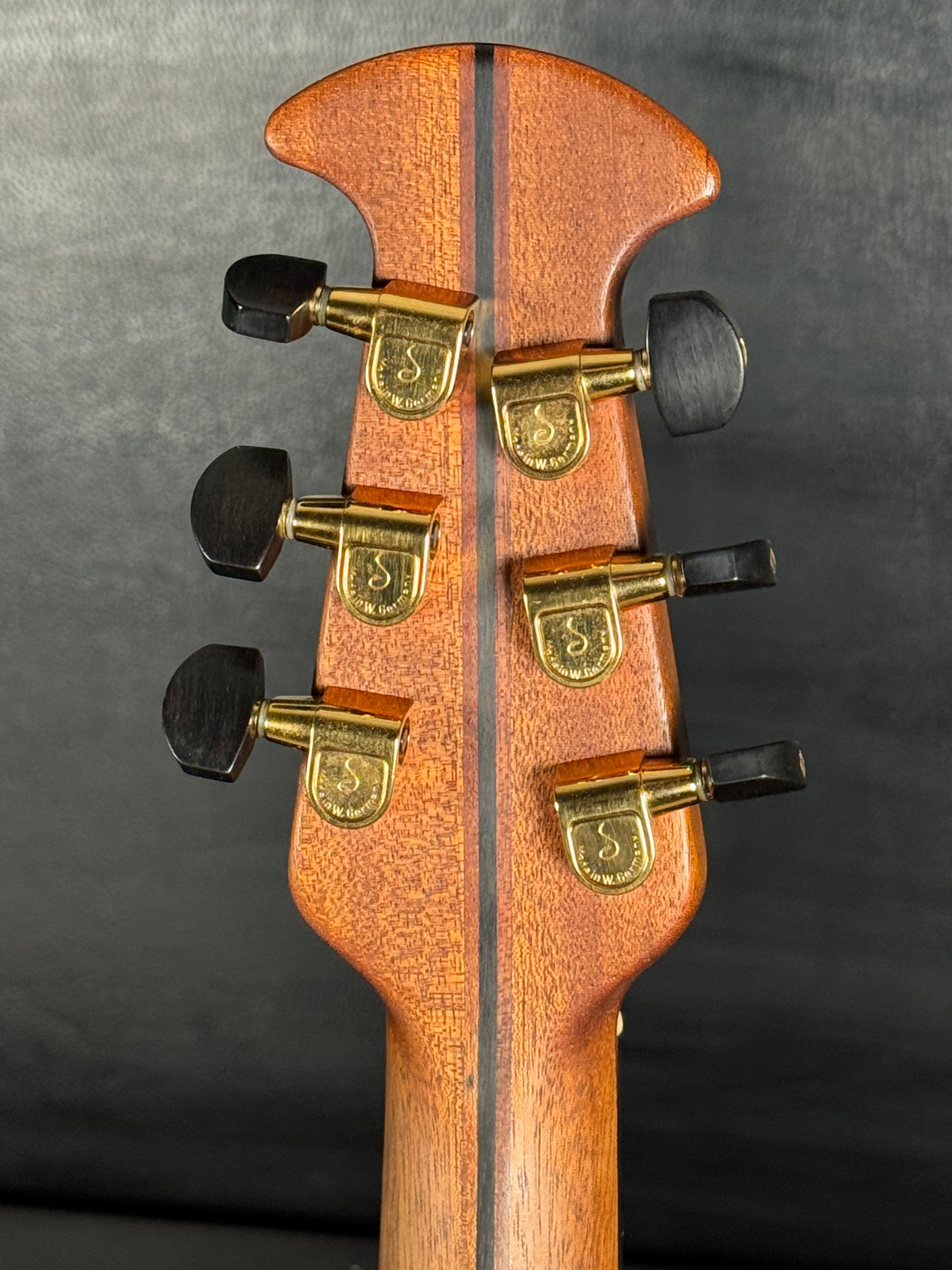 - Neck: Gloss-finished mahogany with ebony center stripe for strength and stability