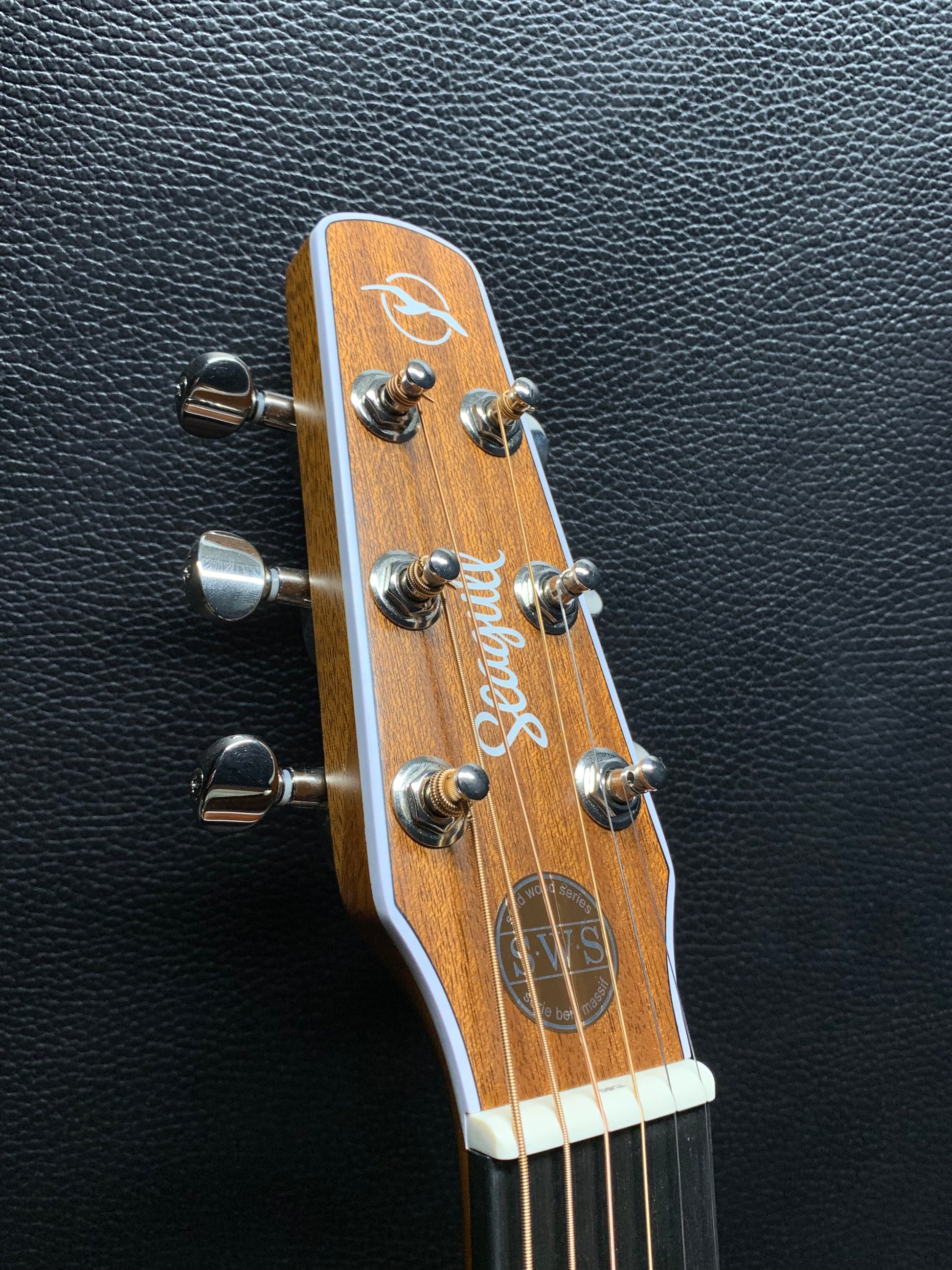 The Maritime SWS Natural A/E features a warm-sounding solid mahogany body, coupled with a solid pressure tested spruce top for a crisp and defined tone, as well as a Richlite® fretboard for a bold and clear sound. It also features a wide 1.8’’ nut width—perfect for finger picking—a semi-gloss finish, and an ebony bridge. The Seagull SWS Natural A/E comes standard with Fishman electronics, ready for the stage!
